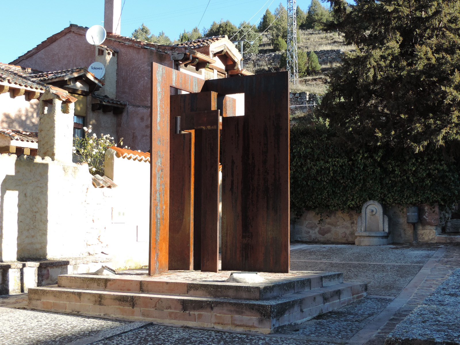 En la plaza de Valdevacas se encuentra la escultura Puertas de la Ausencia de José Antonio Abella, que refleja la despoblación rural y el abandono temporal de los hogares, invitando a la reflexión sobre la vida en los pequeños municipios.